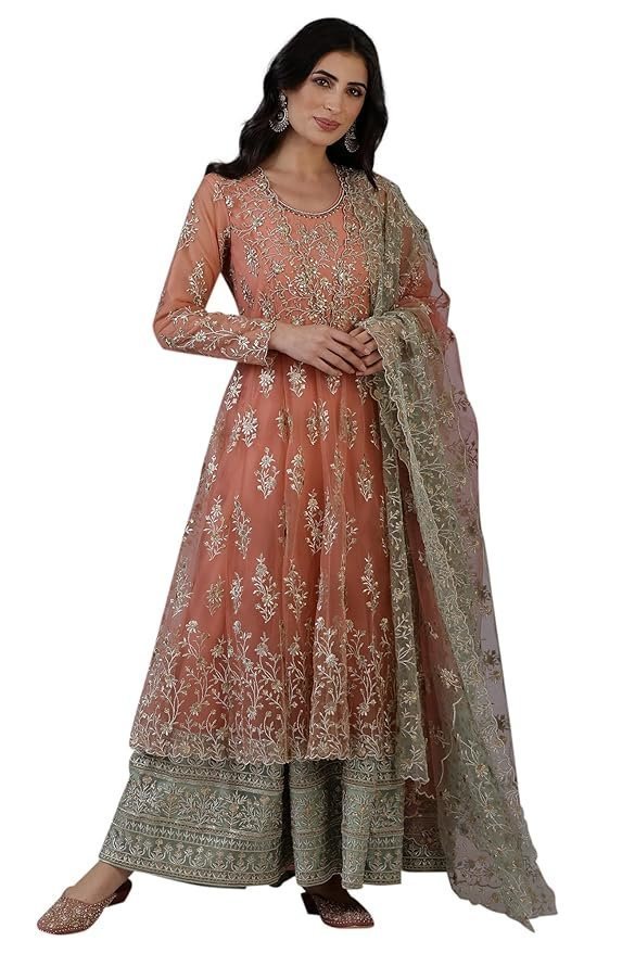Vaamsi Women’s Georgette Embroidered Flared Angrakha Pant With Dupatta With Inner