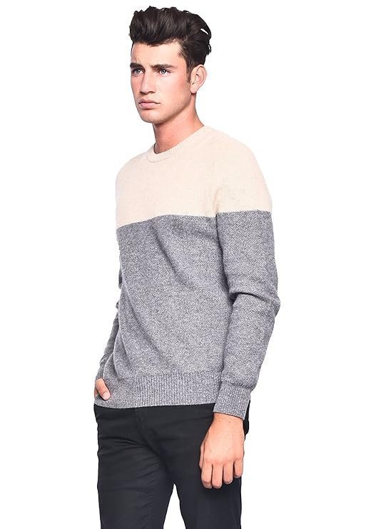 Men’s Women’s Unisex 100% Cashmere Cozy 2-Tone Round Neck